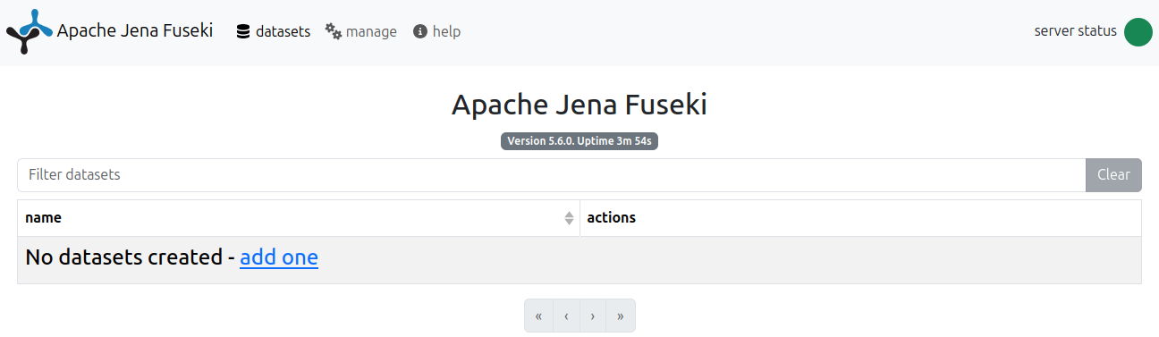 15:46:48 INFO Shiro :: Shiro configuration: file:/home/david-palecek/coding/apache-jena-fuseki-5.6.0/run/shiro.iniNow opening your localhost, http://localhost:3030/, you should see the following page